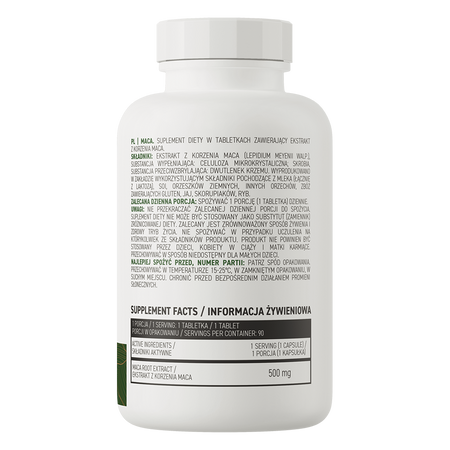 OstroVit Maca VEGE ist ein hochwertiges Nahrungsergänzungsmittel, das Maca-Wurzelextrakt enthält. Es ist ein veganes Präparat, das in Form von leicht zu schluckenden Tabletten erhältlich ist. Es ist ein Produkt, das für Menschen entwickelt wurde, die ihre tägliche Ernährung mit wertvollen Verbindungen ergänzen möchten.